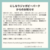 「にしなりジャガピーパーク」 公式インスタです(^^)/★ 【問い合わせ先】 ●開催日(10時ー17時)080-9590-6378 ●平日(10時ー16時)06-6630-6061(釜ヶ崎支援機構) ※インスタのメッセージ機能は停止しています。