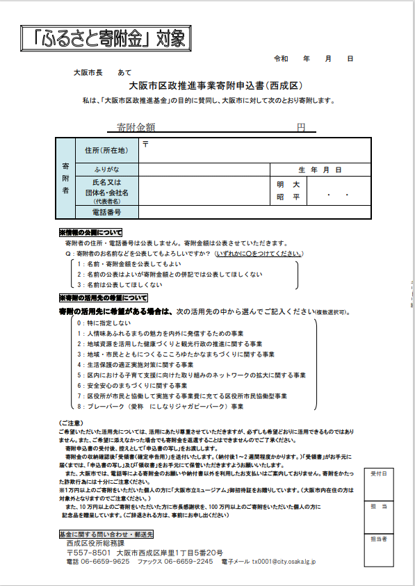 「西成区へのふるさと寄附金のお願い」西成区役所HP内