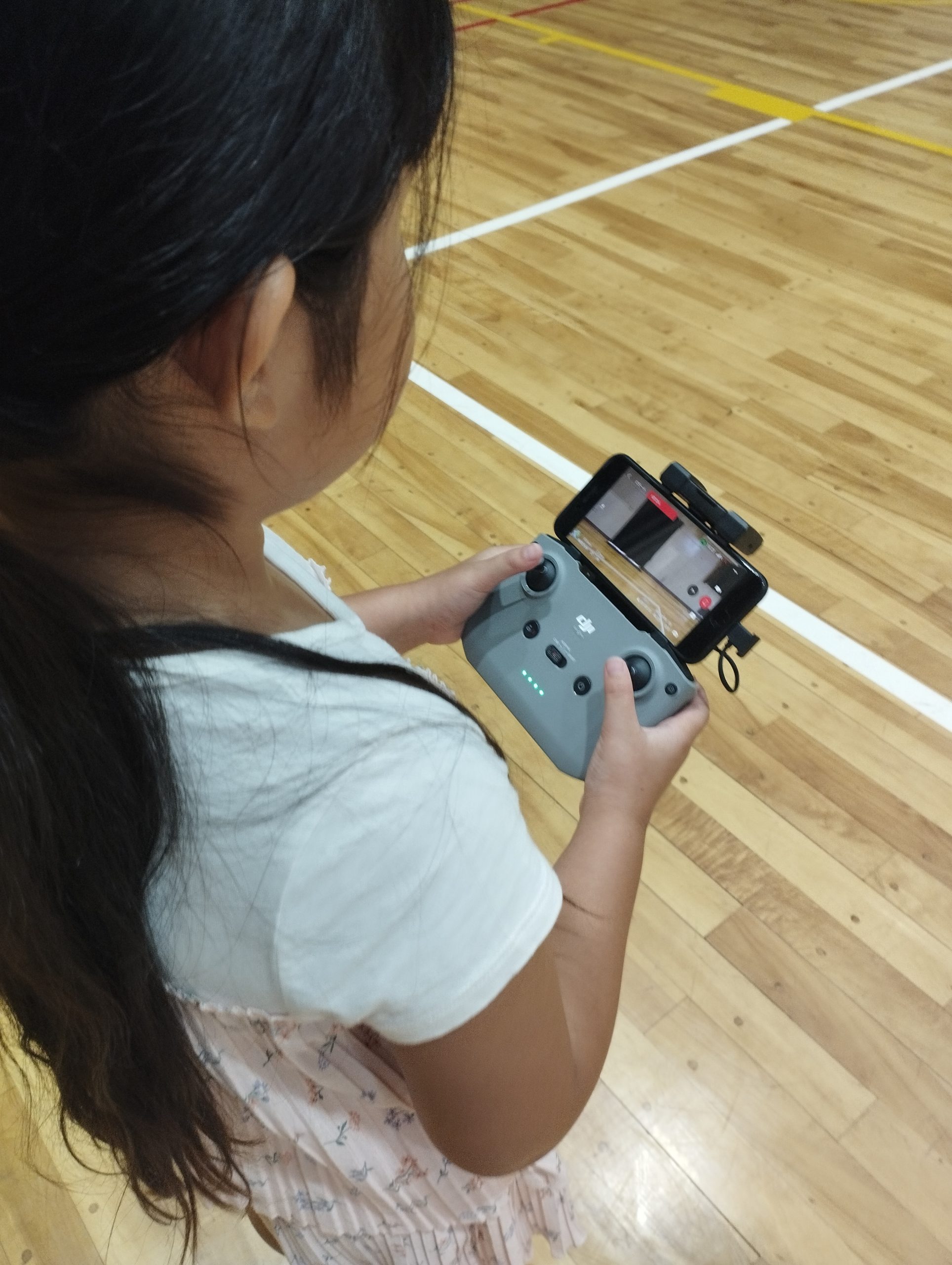 - ドローンのコントローラーの上部にはスマホが連結されており、画面を確認しながらドローンを操縦することができる
