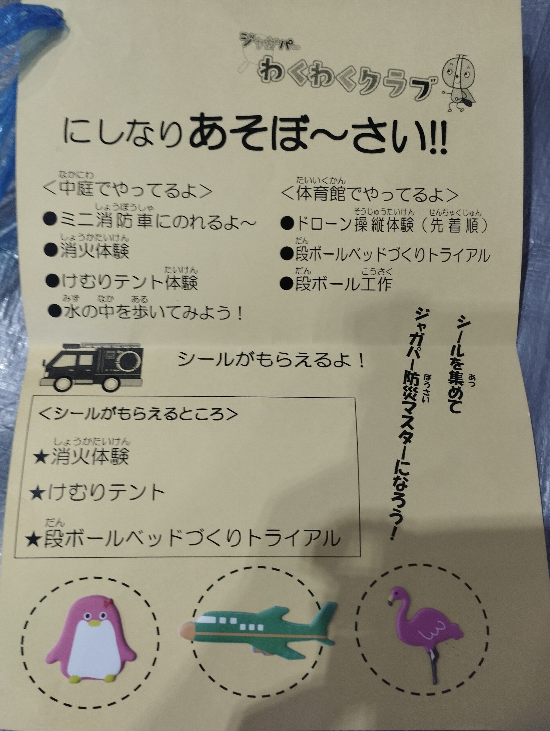 2024年8月1日、梅南中学校にて開催の「ジャガパーわくわくクラブ」地域×遊び×防災『にしなりあそぼーさい』に参加してきました。
