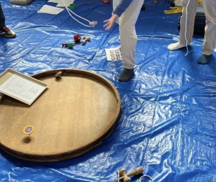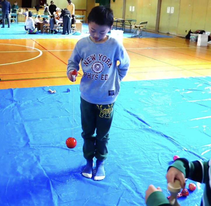 日本のあそびでは、コマとけん玉名人が来てくれて、今回初めて回せるようになった子もいました~!